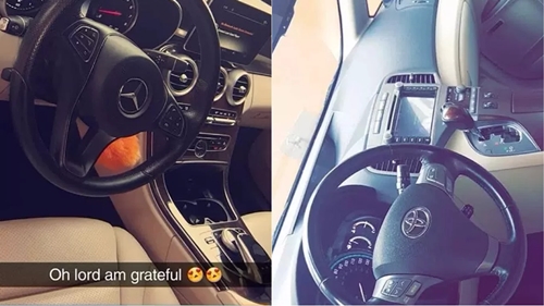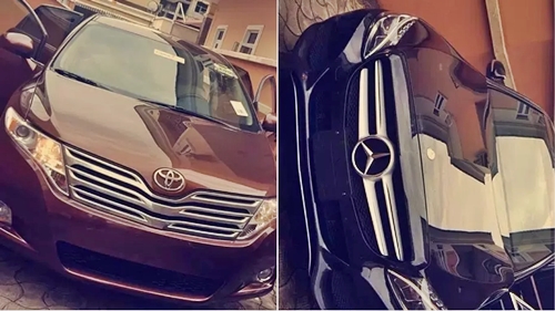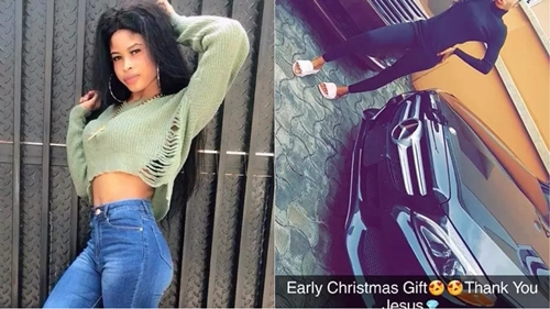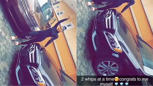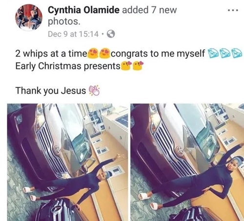 A pretty Nigerian young lady has set the internet buzzing with mixed reactions after she posted pictures of her newly acquired cars which is her early Christmas presents.